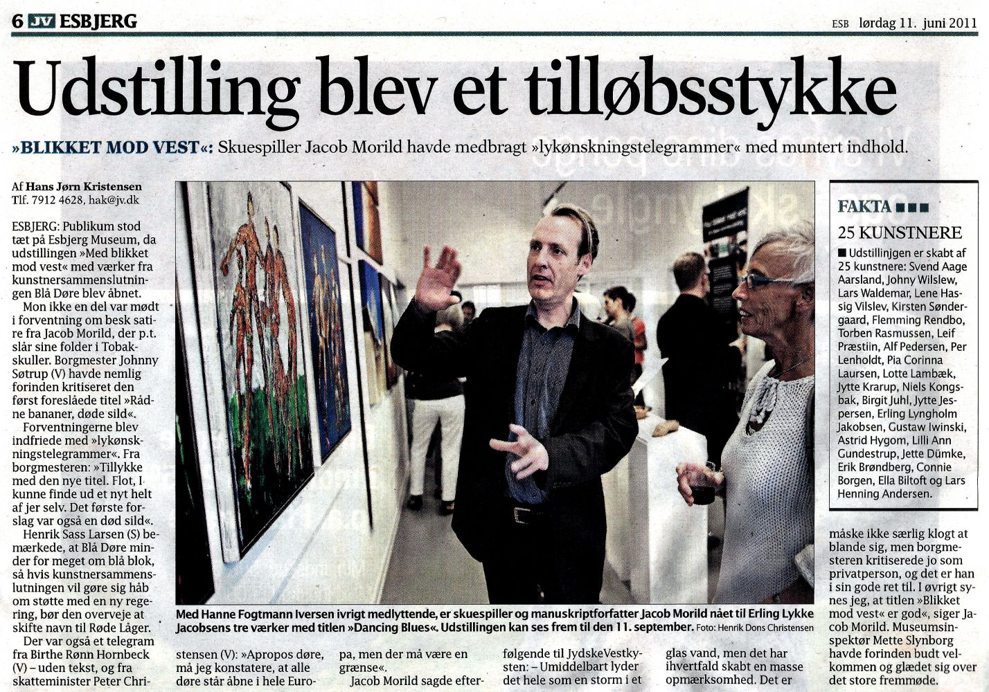 Udstillingen havde titlen ”Med blikket mod vest – Blå Døres sommerudstilling”. Hensigten med denne titel var at skabe opmærksomhed om og fokus på kunstnergruppen bag BLÅ DØRE i relation til Esbjerg.