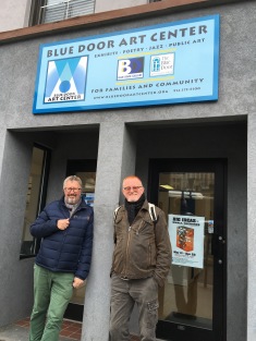Blå Døre i Esbjerg er åbenbart ikke ene om at hedde Blå Døre - både i New York, Florida og i Springfield Illinois findes kunstnergrupper som af uransagelige grunde har valgt at kalde sig Blå Døre, eller som det hedder på de kanter, Blue Door. Her ses 2 Blå Døre medlemmer på besøg hos Blue Door, Yonkers.