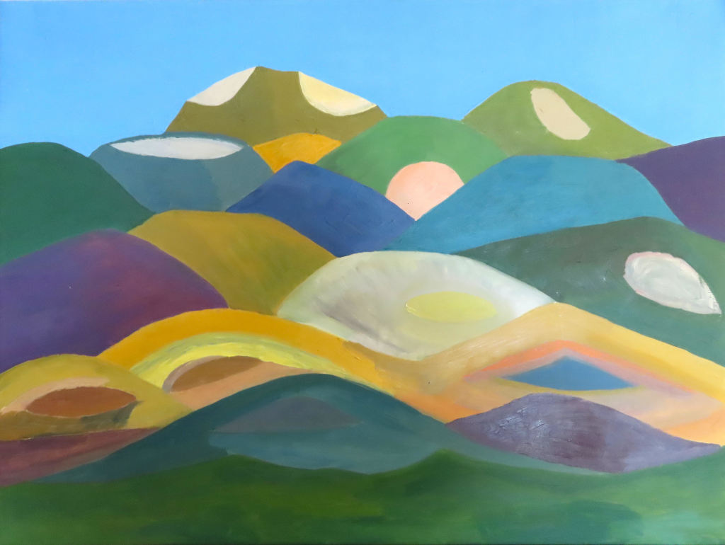 Akvareller, olie- og akrylmalerier - En mangfoldighed af livsbekræftende farver og motiver møder en, når man træder ind ad døren. Der er stemningsfulde landskabsbilleder - og blomsterbilleder, hvor motiverne er let genkendelige, og alligevel abstrakte. Der er billeder, hvor der alene leges med farver og former. Der er også abstrakte, fabulerende billeder, inspireret af ”kompositioner” hentet i naturen. Håbet er, at disse billeder vækker beskuerens fantasi og nysgerrighed.