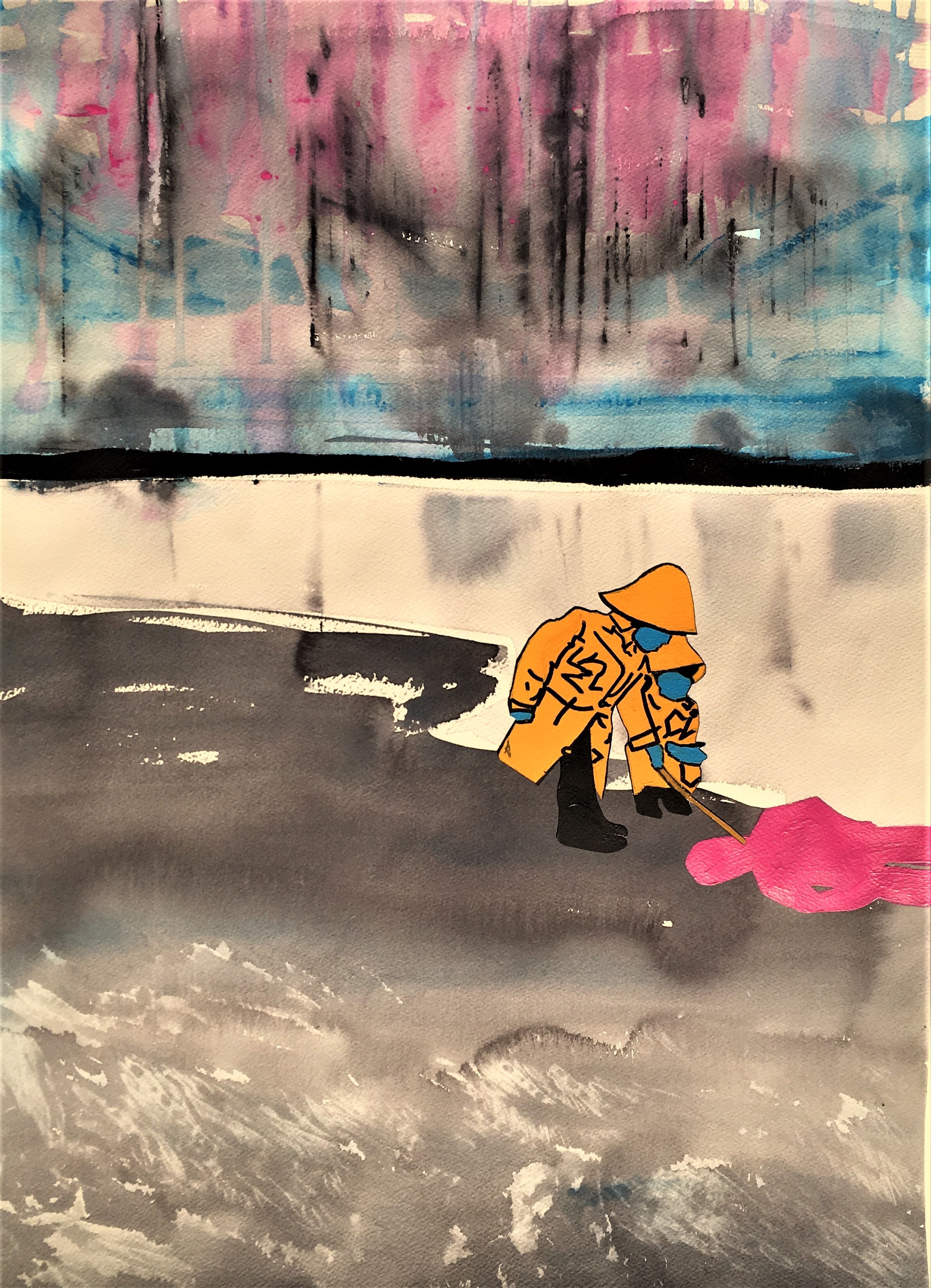 I was very excited to be invited to participate in this collaborative project. It has been a few years since I worked in 2D, so I was a little nervous. I love doing collaborative work, but usually work with someone I know. Collaborating with someone I have never met, who works in a completely different medium, was a wonderful challenge. After some trepidation I jumped into it. This type of collaboration is so important. Not only does it push you to be even more creative, it also creates an opportunity to connect with artists from another part of the world.