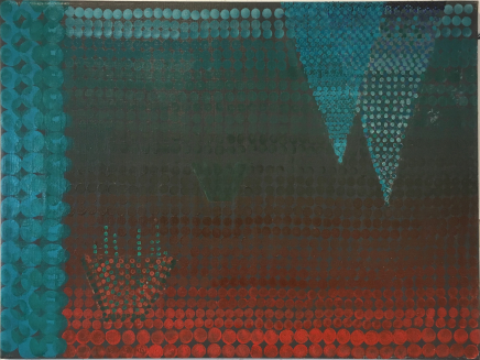 My partner is artist Carol Smeraldo, who sent me a landscape picture painted with pastel colours - an almost finished picture. I chose the keep the colours and the organic forms, but paint the surroundings in a pointilistic style, i.e. dots placed close together. It gives the picture a vivid and vibrant expression.