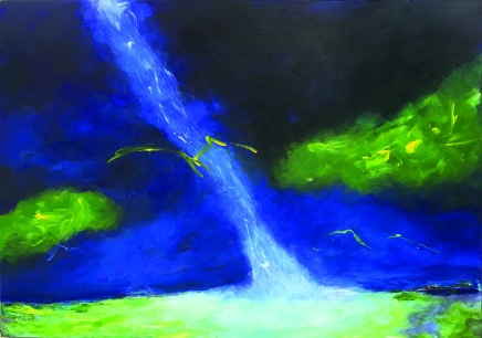 My paintings are a mixture of abstract and naturalistic, inspired by the nature around the Wadden Sea, the changing light, the flat landscape with the high sky –