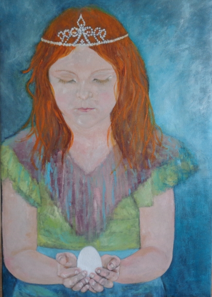 I wanted to show the fragility of a child, the symbol is the egg she holds in her hands, showing also the fantasy world a 10 year old girl lives in, the symbol being the princess crown she is wearing.