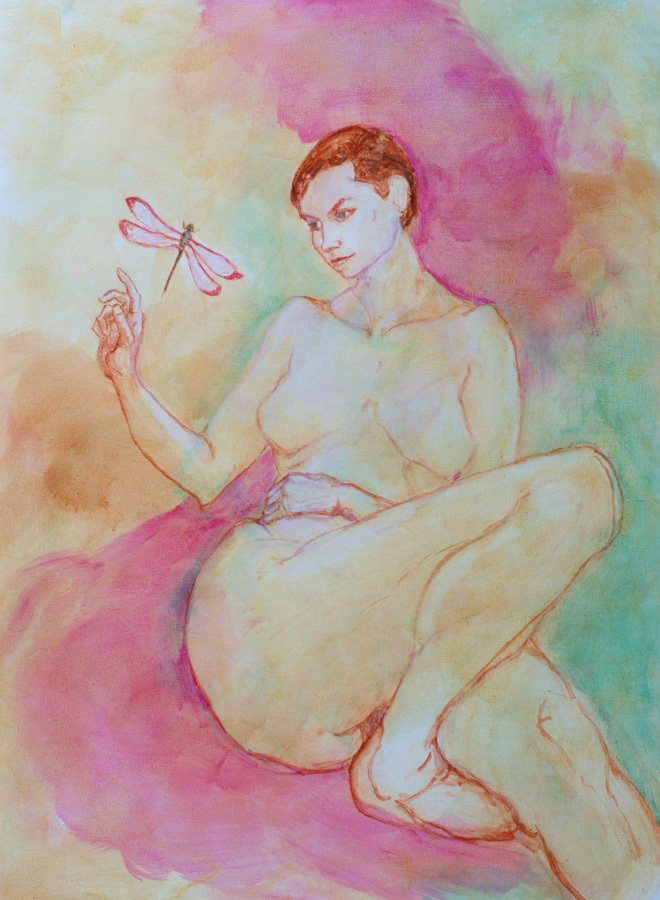 I received Chris´ piece and enjoyed a beautiful work from his hand, showing a young naked woman sitting looking at a firefly.