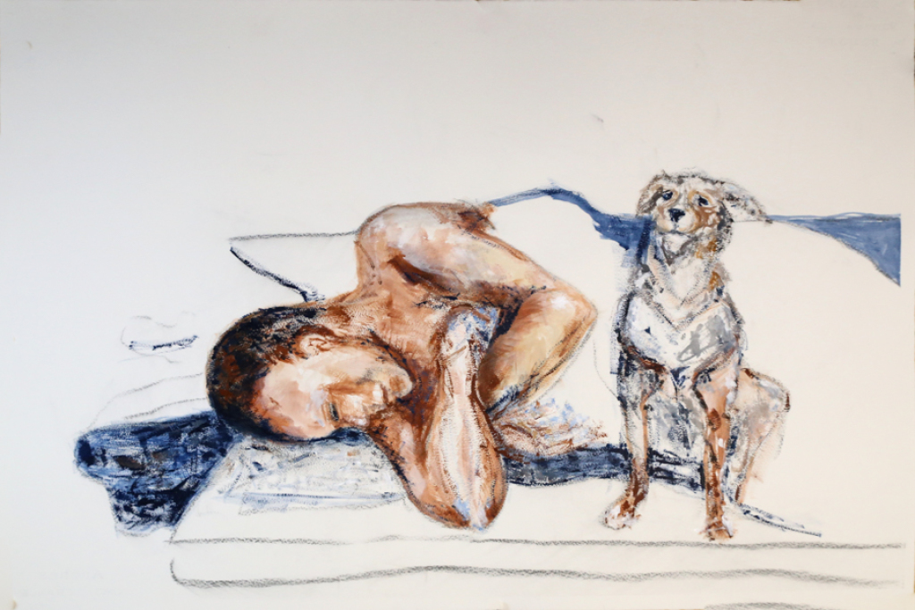 So I sent him a work showing a man lying, sleeping on the street, while his dog was watching over him.