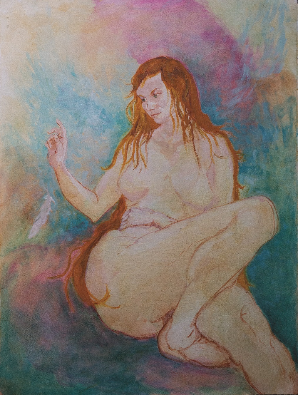 I then painted the red-haired woman as she would look if she was about 10 years old.