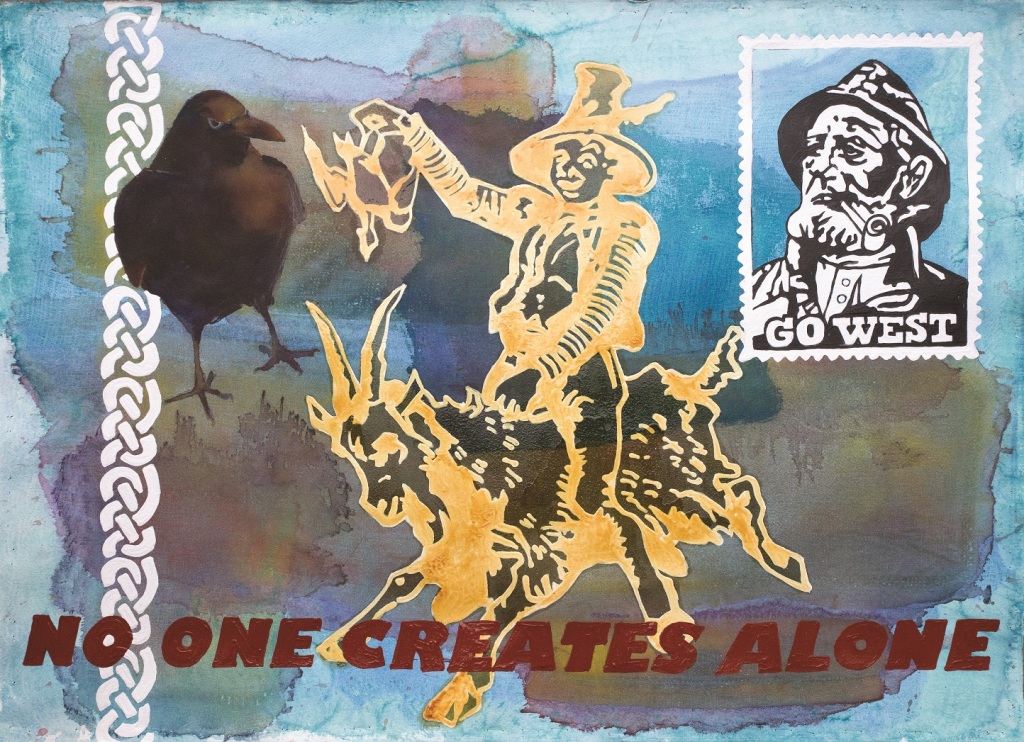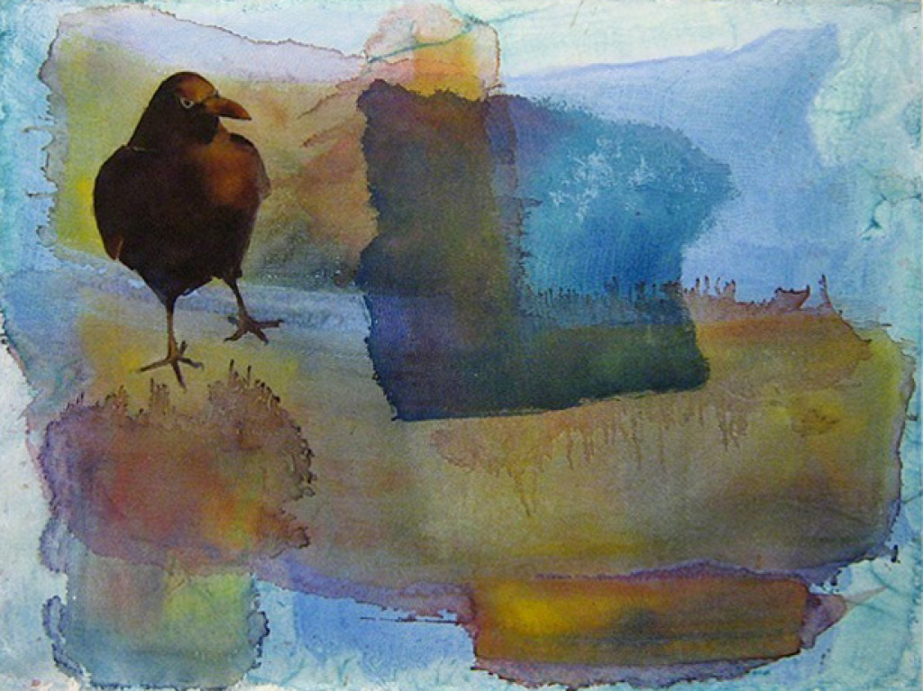 The narrative potential of crows and more recently gulls has been a creative wellspring for her encaustic collage works.