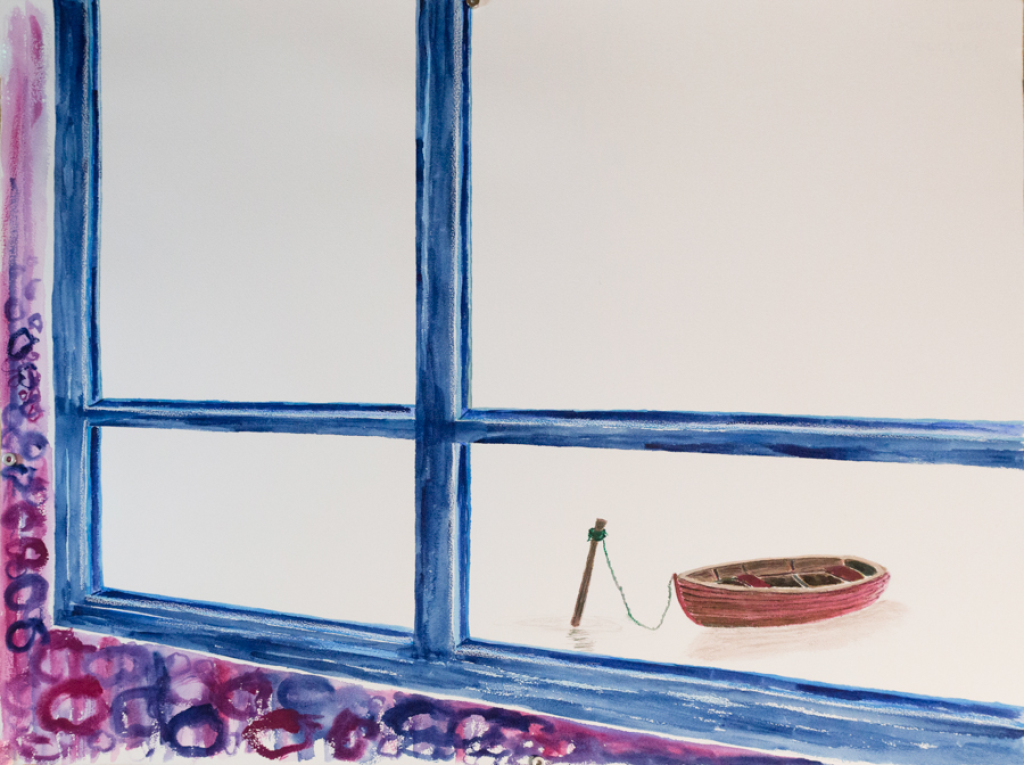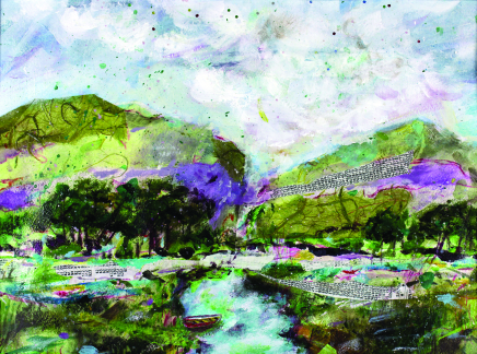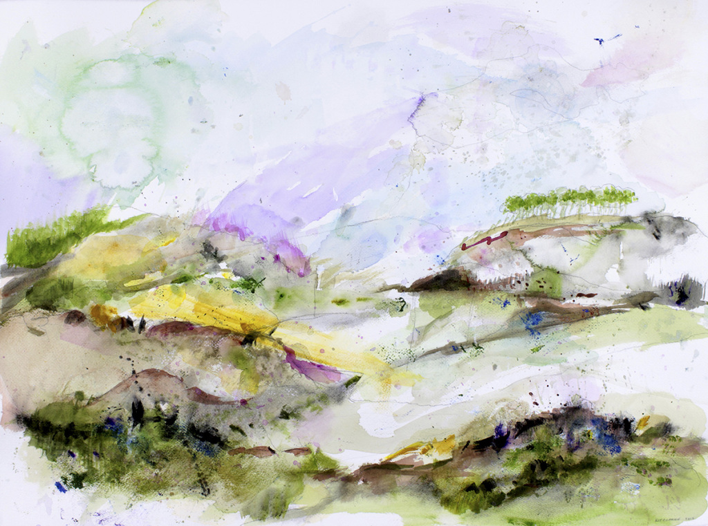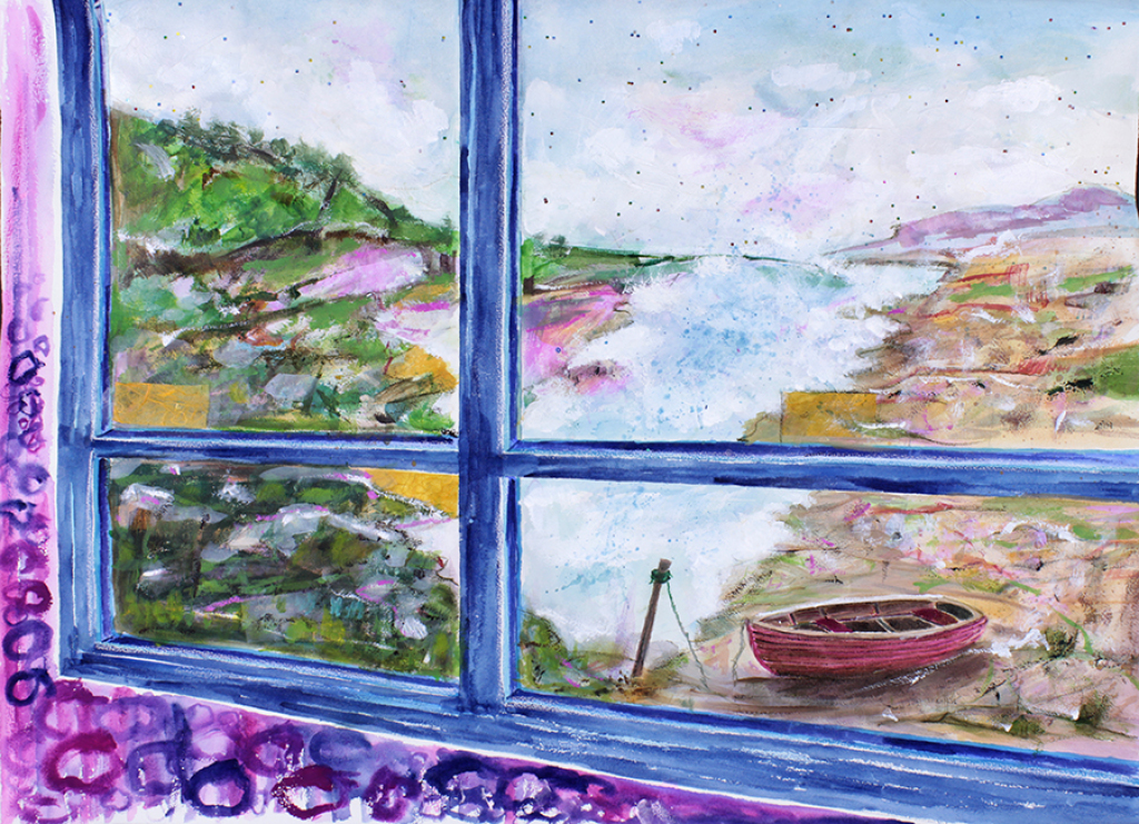 Every day I walk along the beach and absorb the blue colour. I’m not trained to paint mountains and found it difficult to continue in the same style in the colours brown, green and pink.