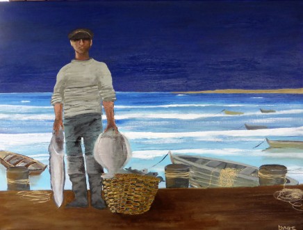 My collaborative painting was inspired by our new sculpture of “The Fisherman from Hjerting”.