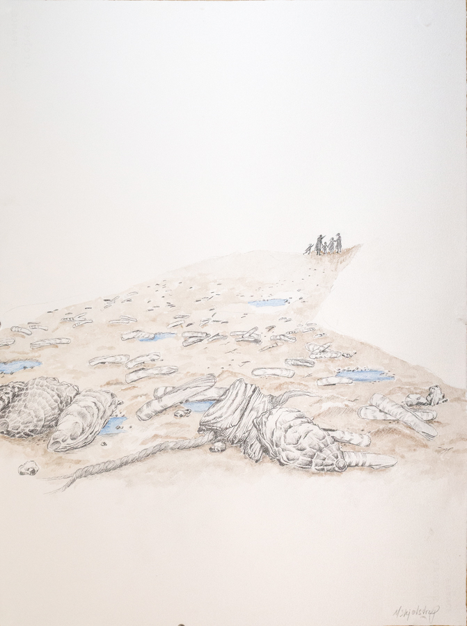 The techniques of etching, I got interested in, when I took my education of 4 years at the art school -Kunsthåndværkerskolen, DK. I like the craftmanship and tools needed for making prints. The way I draw, I can put into my grafic work. I enjoy drawing with pencils and prefer wax pastels when I use colors.