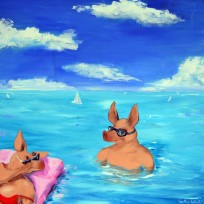 Sue Reeves is a figurative artist. Sue begins with a story. She builds a narrative by layering the figures against several ground layers using combinations of acrylic, digital printing and digital projection on canvas. The story is then yours.